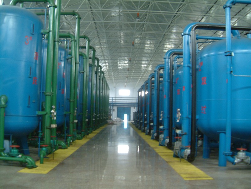 DN1200及以下設(shè)備采用多孔板上裝設(shè)寶塔式ABS型濾水帽,DN1500及以上設(shè)備有多孔板上裝濾帽和砂墊層兩種形式,多孔板材按設(shè)備規(guī)格不同而異,DN500~DN600型用硬聚氯乙烯制作,DN800~DN3200型采用鋼襯膠。 另外,在交換器下部排水帽出,樹脂面處及z大反洗膨脹高度處各設(shè)視鏡一個,用以觀察體內(nèi)工況。筒體上部設(shè)樹脂輸入口,在筒體下部近多孔板處設(shè)樹脂卸出口。樹脂的輸入和卸出均可采用水力輸送。